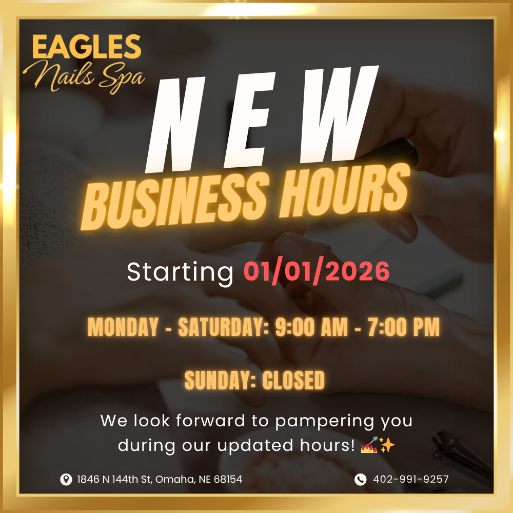 Welcome to Eagles Nails Spa, your sanctuary for beauty and relaxation located in the vibrant heart of Omaha at 1846 N 144th St. We are not just a nail salon; we are a comprehensive beauty destination where all your aesthetic needs are met with unparalleled professionalism. Specializing in expert nail designs, meticulous waxing, and soothing facial treatments, we are committed to enhancing your well-being and confidence with each visit.